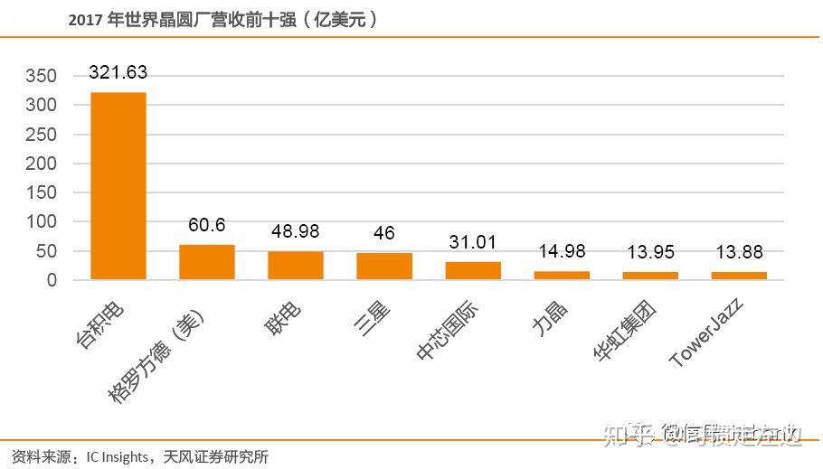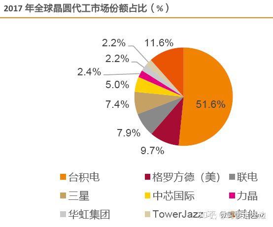 代工业呈现非常明显的头部效应 根据IC Insights 的数据显示,在全球前十大代工厂商中,台积电一家占据了超过一半的市场份额,2017 年前八家市场份额接近90%,同时代工主要集中在东亚地区,美国很少有此类型的公司,这也和产业转移和产业分工有关。我们认为,中国大陆通过资本投资和人才集聚,是有可能在未来十年实现代工超越的。