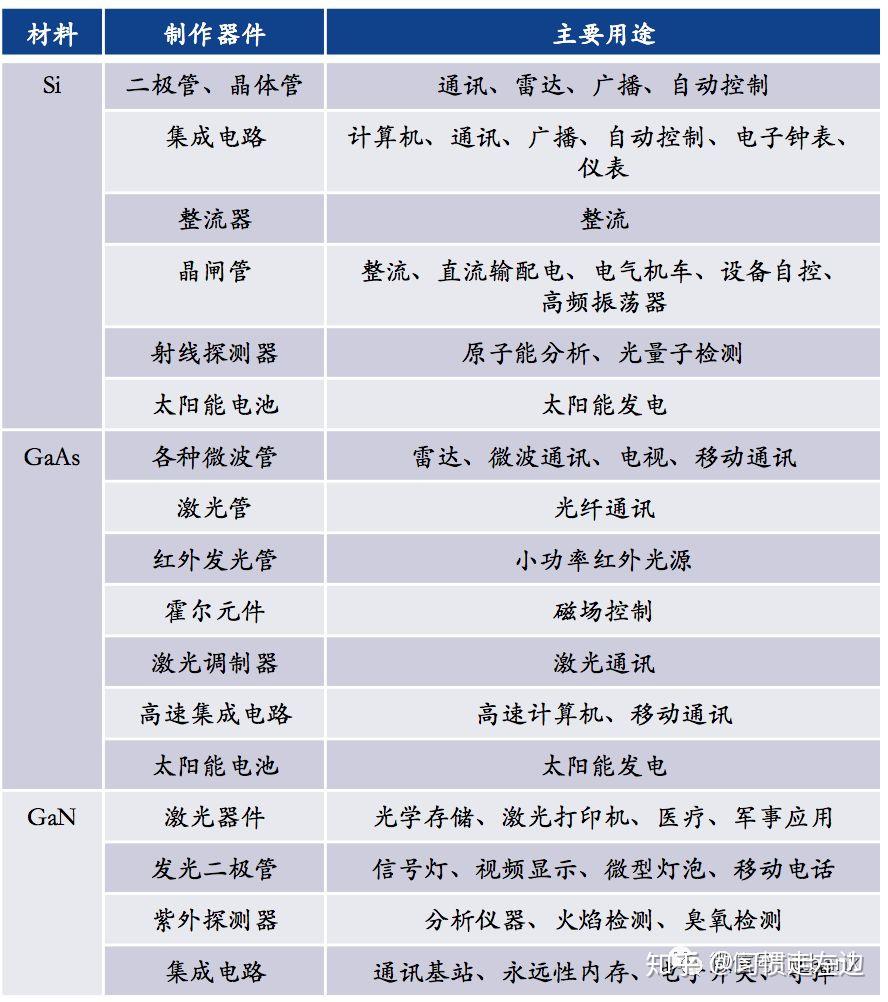 GaAs:主要应用于大功率发光电子器件和射频器件;